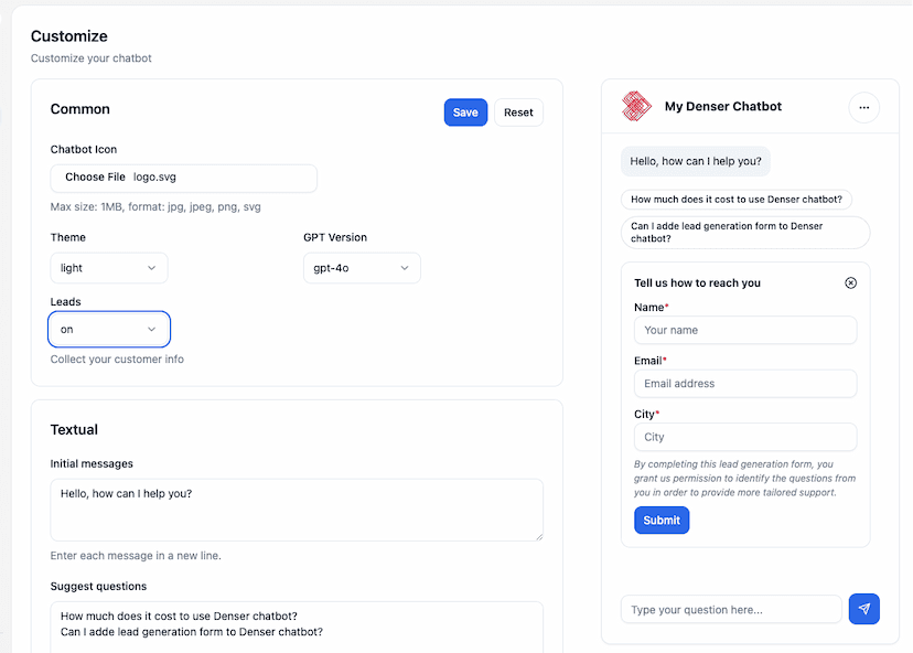If you’re looking for an adaptable AI chatbot solution for technical support, Denser.ai offers a comprehensive set of features. It comes with unique features necessary for technical support and a deep understanding of technical issues customers face.