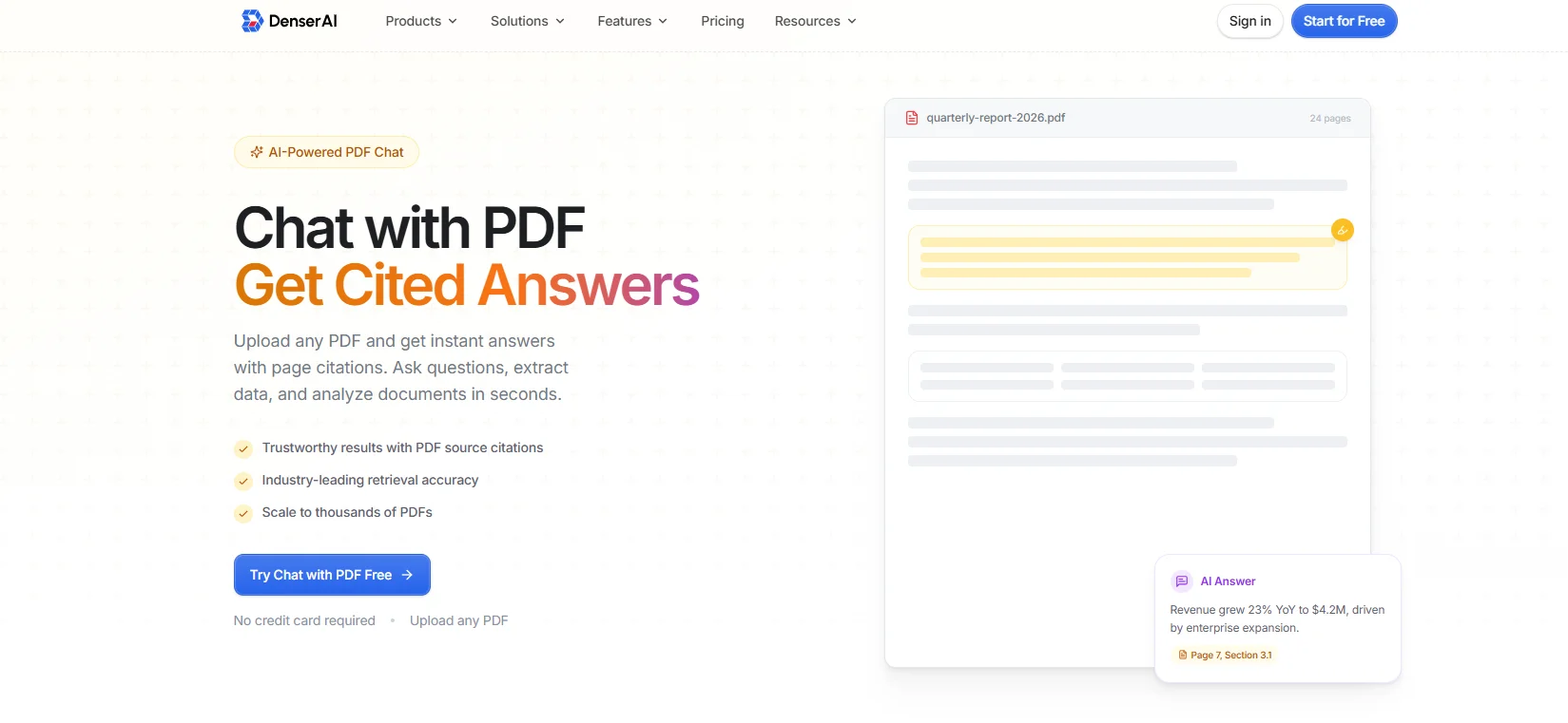 Denser gives developers a faster way to build chat with PDF workflows that return cited answers instead of plain extracted text.