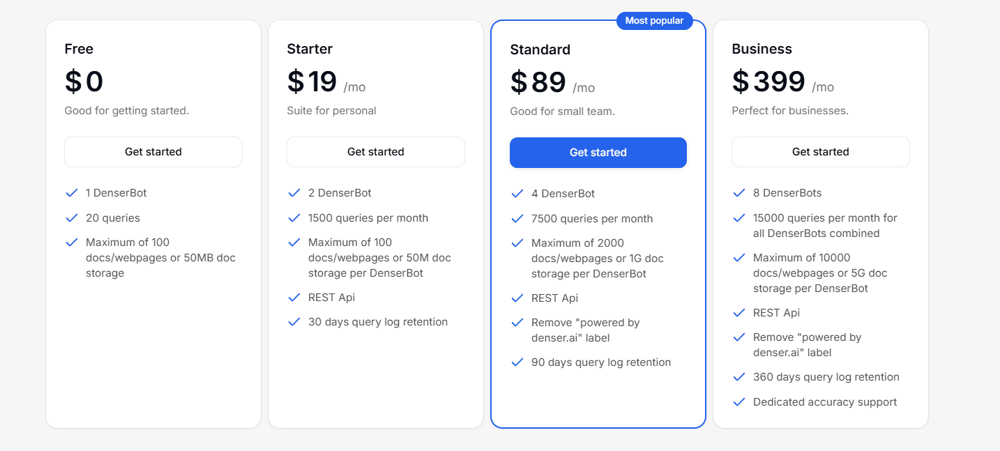 Denser.ai offers pricing plans that suit businesses of all sizes, from start-ups to large-scale enterprises.