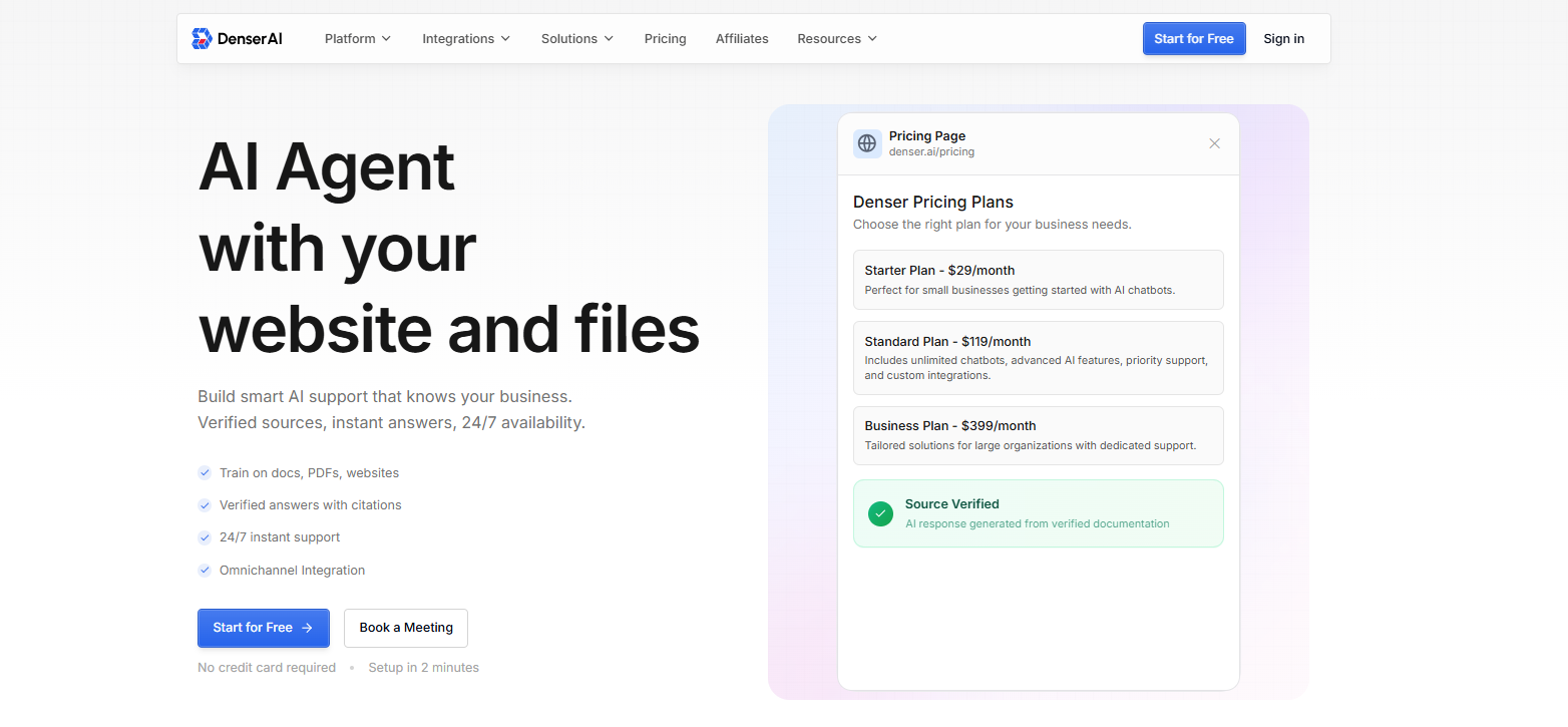 When someone is asking about pricing, comparing products, or exploring your services, Denser delivers accurate responses that feel natural and helpful. It leads to lower bounce rates, longer session times, and a more confident user experience.